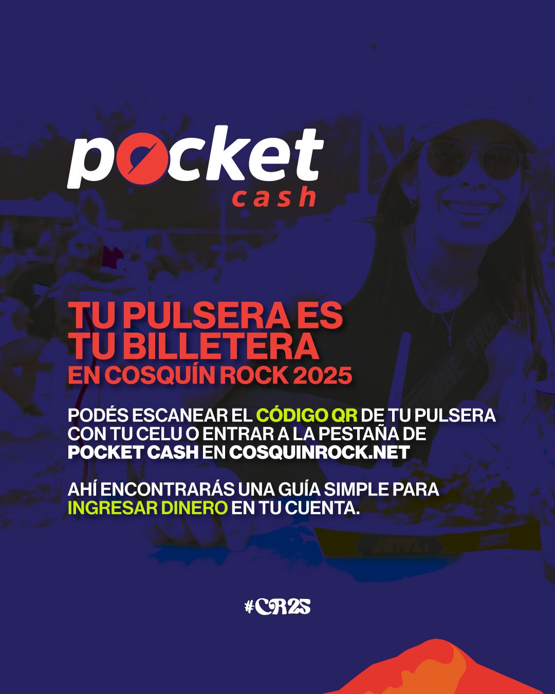 Cosquín Rock avanza con su nueva forma de pago que promete agilizar y mejorar la experiencia de los asistentes: POCKET CASH, una pulsera equipada con tecnología RFID que será el único medio aceptado para realizar compras dentro del predio.