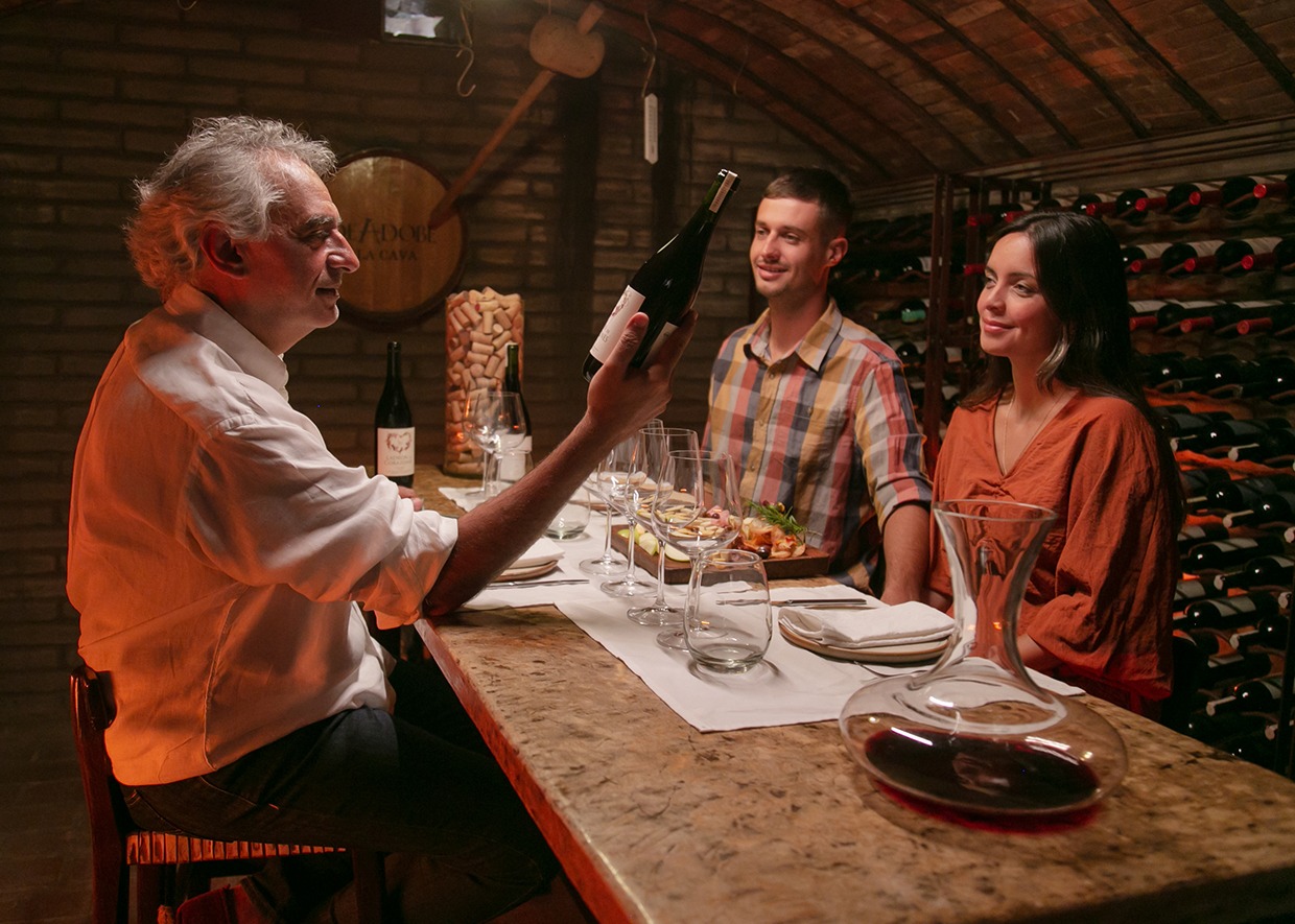 La propuesta gastronómica se desarrolla en DeAdobe Restaurante, donde la cocina de kilómetro cero se nutre de la huerta orgánica y de productores locales. Cada plato está pensado para dialogar con los vinos de la casa, en una combinación que busca resaltar la identidad del territorio.