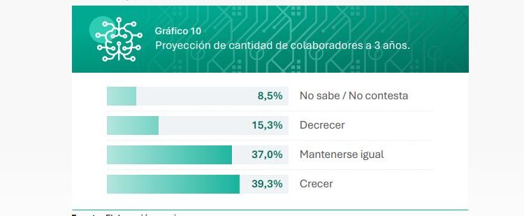 A pesar del avance tecnológico, el 39,3% de las empresas argentinas cree que su dotación de personal crecerá en los próximos tres años, mientras que un 37% espera mantenerla. No obstante, el informe advierte una tendencia decreciente en estas expectativas en comparación con años anteriores, especialmente en grandes empresas (más de 250 empleados), donde el 34,6% prevé reducciones debido al impacto de la automatización avanzada.