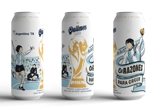 En este sentido, Quilmes lanzó tres diseños de edición limitada en latas y botellas, inspirados en momentos icónicos de la historia del fútbol argentino, en particular en los tres títulos mundialistas obtenidos por la selección. Los diseños no solo acompañan la promoción, sino que también se posicionan como piezas coleccionables, pensadas para fanáticos que buscan revivir esos hitos a través de objetos que combinan diseño, identidad y memoria futbolera.
